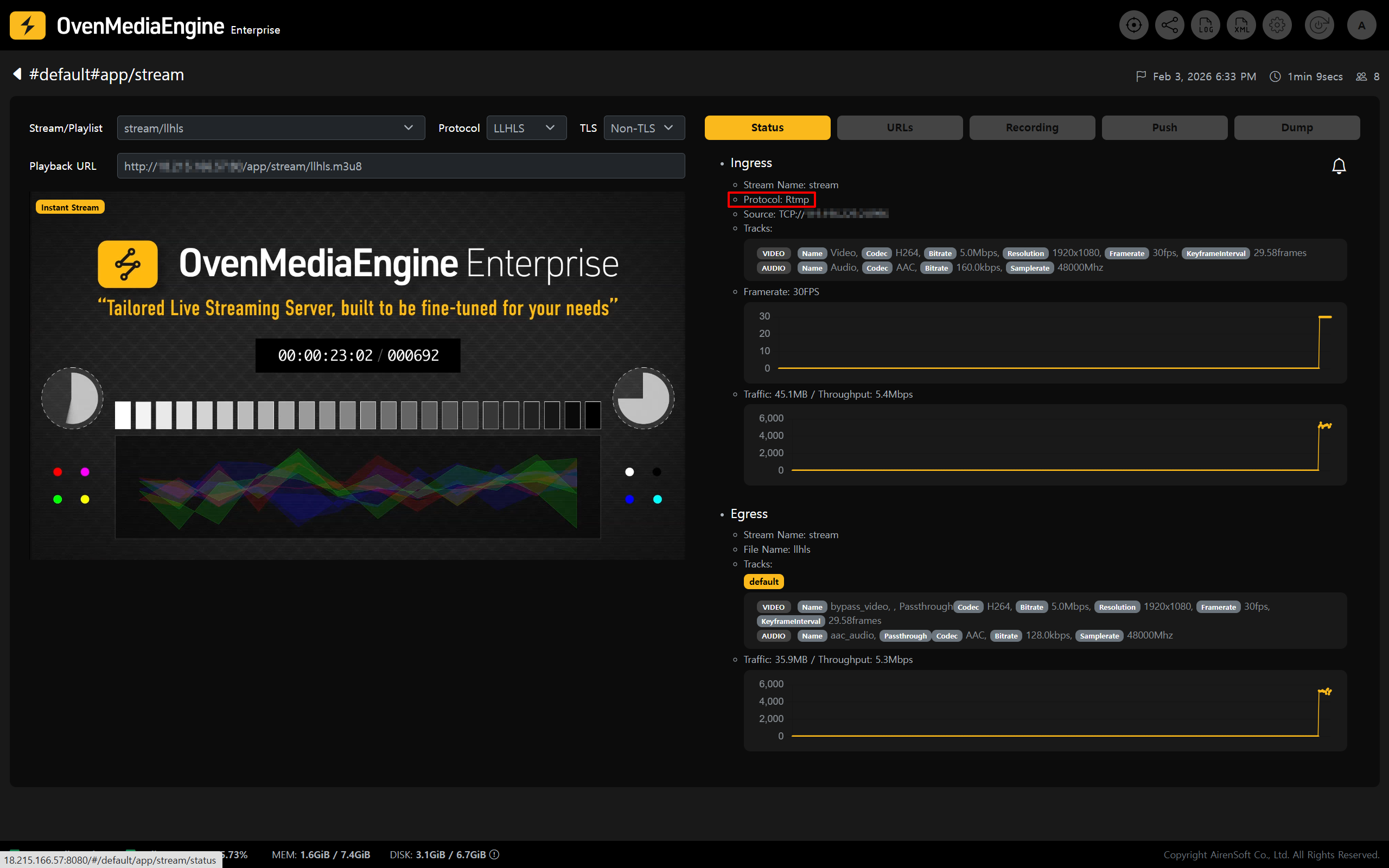 * Ingress URL Format: <mark style="color:$primary;">**`rtmp://`**</mark>`{Public IPv4 or Domain}:`<mark style="color:$primary;">**`1935`**</mark>`/{app}/{stream}`