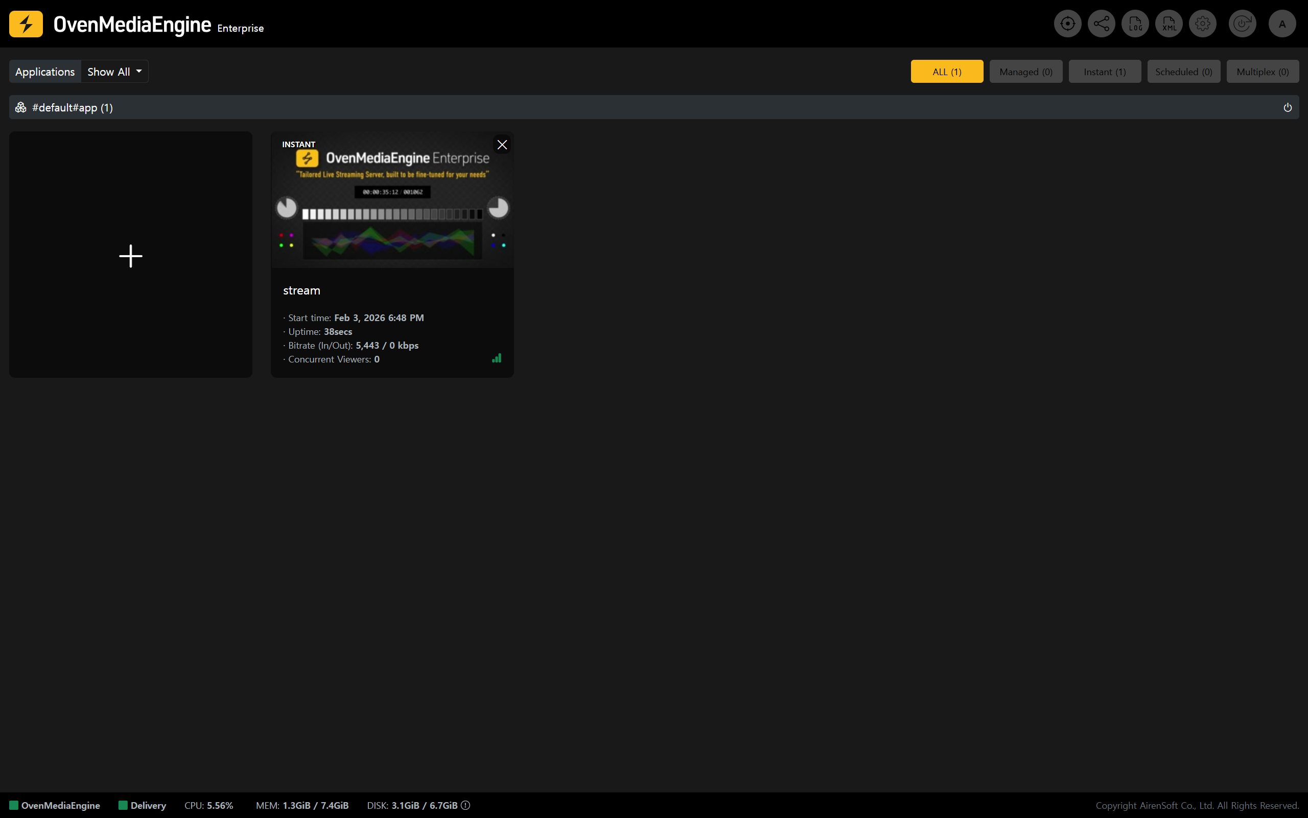 5. Following "[Post-Setup Verification for OvenMediaEngine Enterprise](https://ovenmediaengine-enterprise.gitbook.io/guide/exclusive/getting-started-on-aws#post-setup-verification-for-ovenmediaengine-enterprise)", publish a media source to `rtmp://`<mark style="color:yellow;">`{Domain}`</mark>`:1935/{app}/{stream}`, then confirm Stream List on the Web Console that the stream is being delivered properly.