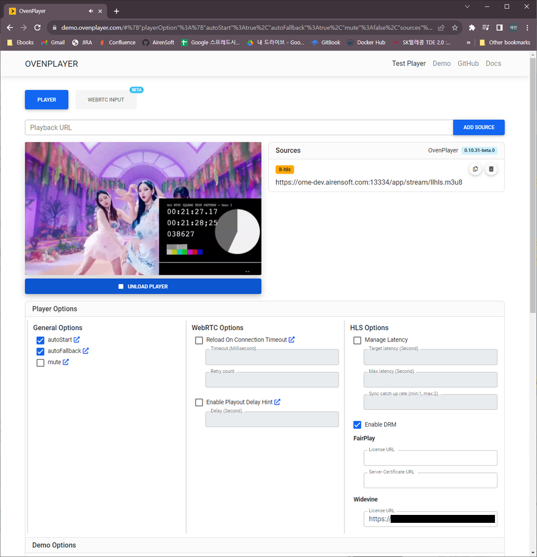 [OvenPlayer Demo](https://demo.ovenplayer.com/)에 DRM 관련 옵션이 추가되었습니다. OvenMediaEngine Enterprise가 제공하는 Egress URL을 통해 DRM 적용 여부를 테스트할 수 있습니다.&#x20;