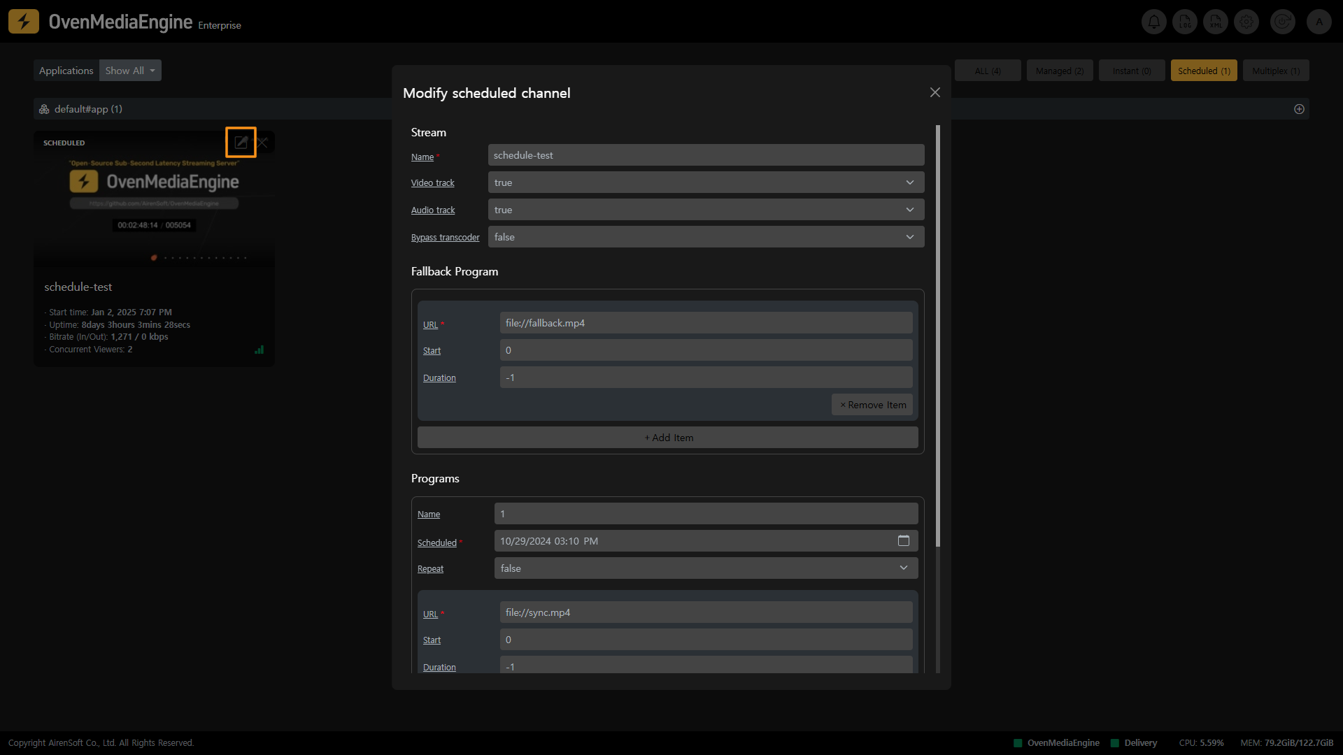 Scheduled Channel은 OvenMediaEngine Enterprise에서 사용자가 사전 녹화된 미디어 파일 또는 Live 등을 이용하여 정해진 일정에 맞춰 Stream을 송출하는 기능입니다.